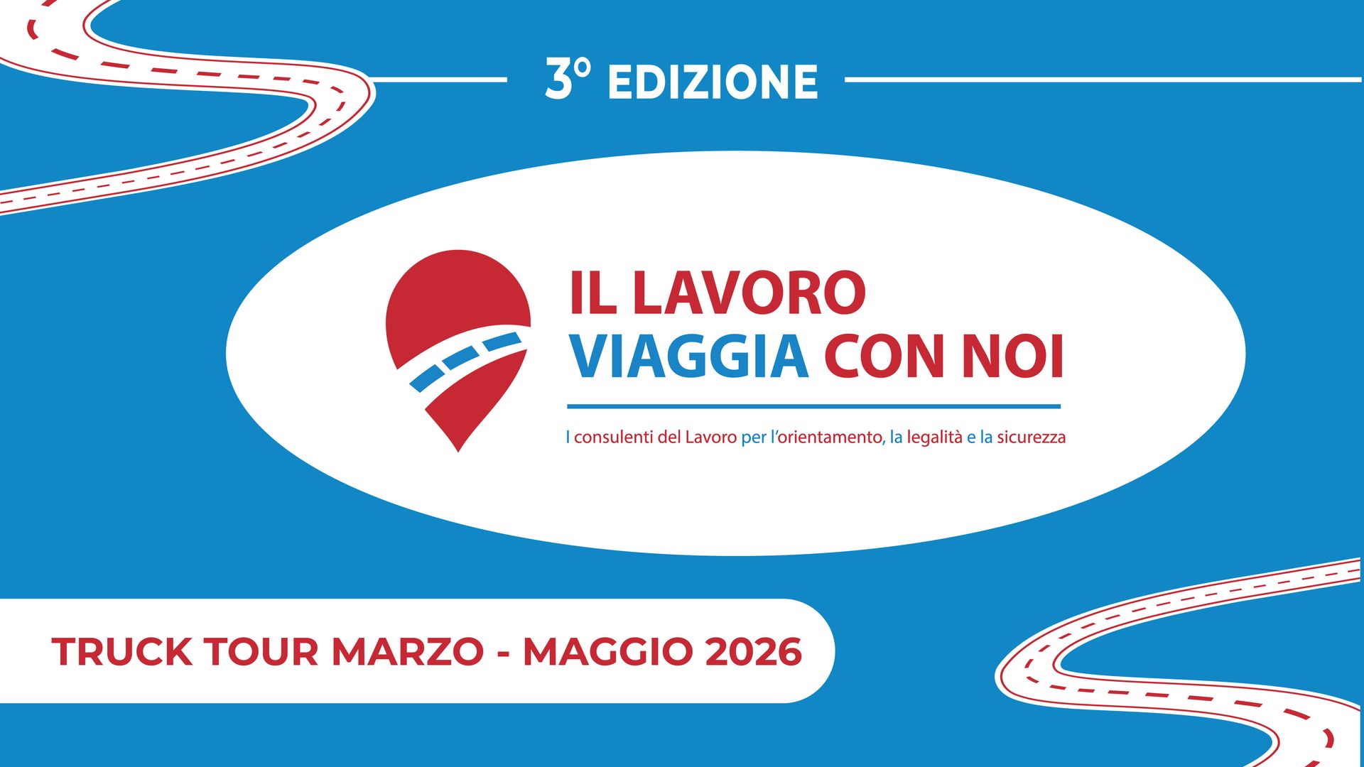 “Il Lavoro viaggia con noi! Un tour per l'orientamento, la legalità e la sicurezza” il 10 aprile 2026 approda a Caltanissetta, quinta tappa dell’evento, e seconda in Sicilia. La giornata nel capoluogo nisseno è parte dell'evento promosso a livello nazionale per diffondere la cultura del lavoro etico e l’importanza dell’orientamento al lavoro e toccherà 23 piazze italiane fino a maggio 2026. Il truck sosterà dalle ore 09:00 alle ore 13:00 presso Viale Regina Margherita, dove gli studenti potranno confrontarsi con professionisti specializzati nell’orientamento che si rendono disponibili gratuitamente per supportarli nell’acquisire consapevolezza delle proprie aspirazioni e competenze. I nostri orientatori daranno anche consigli pratici su come creare un curriculum vitae efficace e su come avviare un tirocinio formativo, controllando le opportunità locali disponibili. L’evento rappresenta un’opportunità unica per diffondere i valori della legalità e della sicurezza sul lavoro, usando un linguaggio e stili adatti ai giovani e giovanissimi, con un tocco ludico. Tra le varie attività didattiche, oltre al videogame che valorizza il lavoro etico, vari giochi tratti da format televisivi, tutti di grande appeal per gli studenti, che possono così mettersi alla prova su tematiche serie ma in modo interattivo e divertente Dalle ore 15:00 alle ore 18:00 inoltre, grazie al Consiglio Provinciale di Caltanissetta, si terrà un evento formativo, come di consueto valido ai fini della Formazione Continua Obbligatoria (n. 3 crediti deontologici). Oggetto dell’incontro, che avrà luogo presso il Teatro Regina Margherita in C.so Vittorio Emanuele II,73, saranno due temi di grande interesse per i Consulenti del Lavoro: Flessibilità nella moderna contrattazione collettiva e Politiche attive per il lavoro: centralità della formazione e delle competenze e ruolo del fondo interprofessionale. La manifestazione, che ha il duplice obiettivo di diffondere la cultura del lavoro presso i più giovani e di valorizzare l’impegno di tutta la Categoria che di essa è portatrice, mantiene fede alla missione di promuovere l’importanza e il ruolo che i Consulenti del Lavoro ricoprono nel mercato del lavoro direttamente nel loro territorio. Clicca qui per consultare l'allegato.
